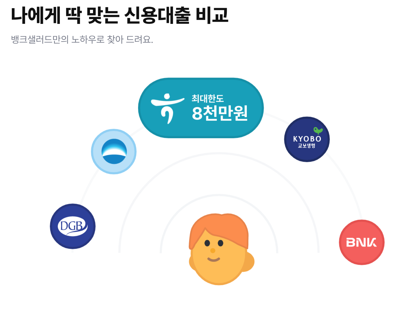 뱅크샐러드 신용대출 금리비교 한번에 서비스 예를 들어, 뱅크샐러드는 '신용대출 금리비교 한번에' 서비스를 제공하는데요.