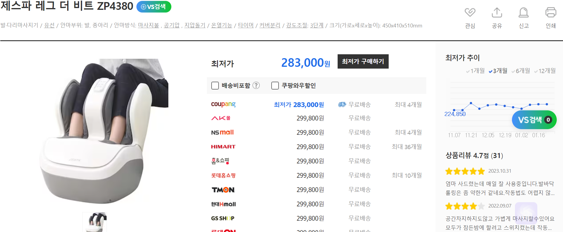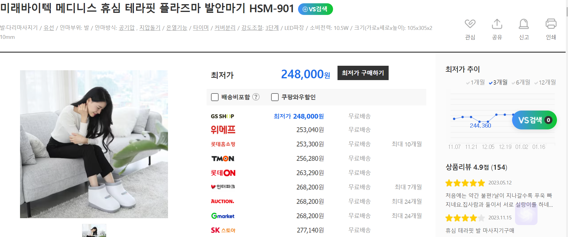 미래바이텍 메디니스 휴심 테라핏 플라즈마 발안마기 HSM-901 제스파 레그 더 비트 두드림 공기압 다리 종아리 발 마사지기 ZP4380: 가격대 약 28만 원 대. 3D 마사지 롤러, 에어백 압박 마사지, 온열 기능. 다나와 평점은 4.7점