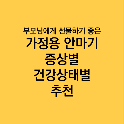 많은 분들이 부모님의 휴식과 건강을 고려하여 가정용 안마기를 선호하시는데, 최근에는 다양한 종류와 기능을 갖춘 가정용 안마기가 많아 선택하기 어려워하십니다.