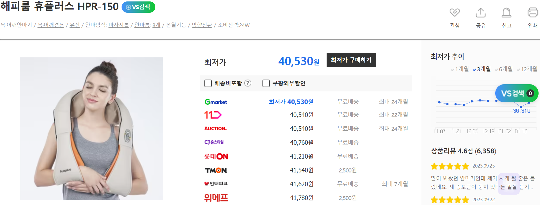 휴플러스 해피룸 목어깨 안마기 HPR-150: 가격대 약 4~5만 원대. 손 주무름 방식, 온열 기능 가능, 안마봉 8개, 목 어깨뿐만 아니라 허피 팔 등에도 사용 가능. 다나와 평점 4.6