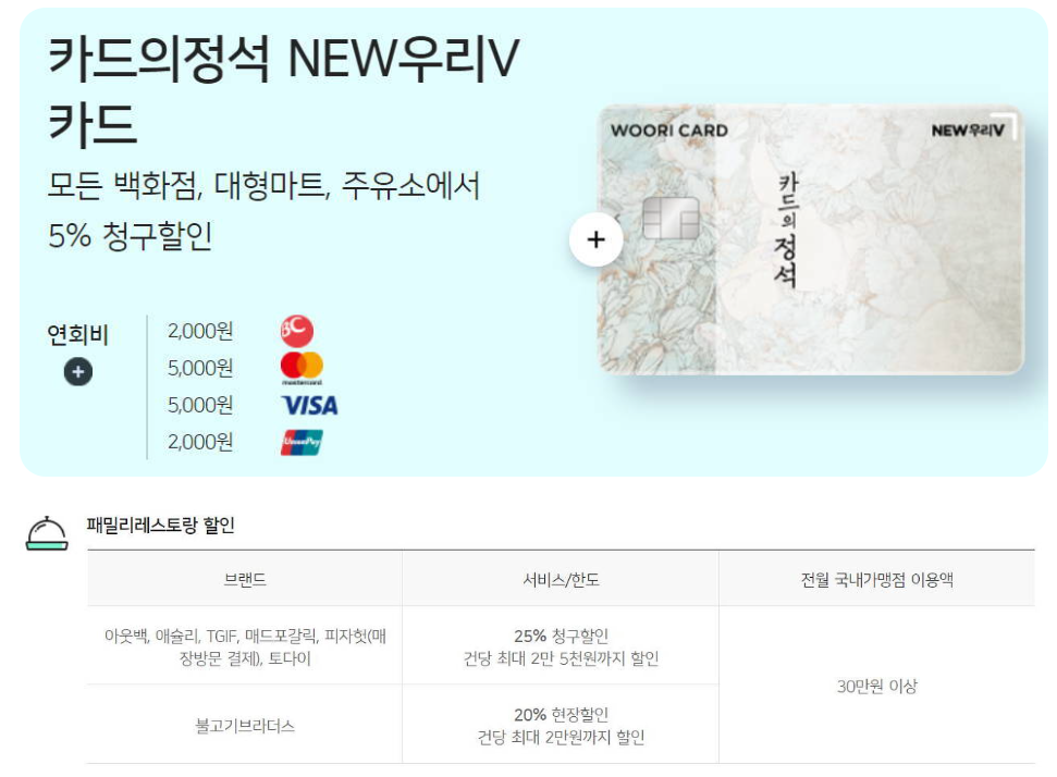 애슐리 퀸즈에서 25% 할인: 카드의 정석 New 우리 V 카드