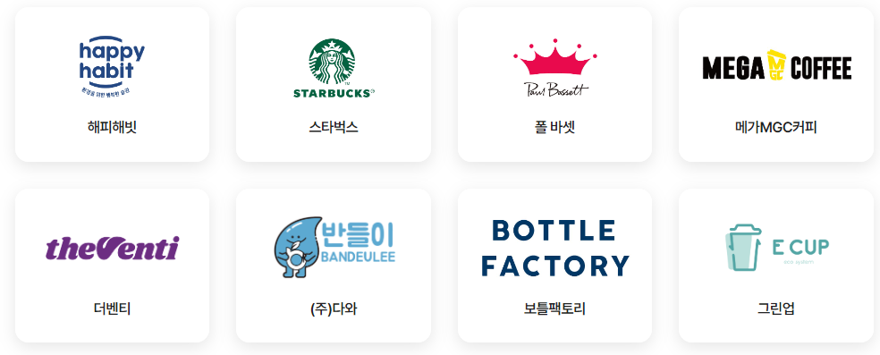 일회용컵 대신 텀블러를 사용하면 건당 300원이 적립되는 곳 그 외에 제휴처가 궁금하시면 이곳(링크)에서 확인하실 수 있어요